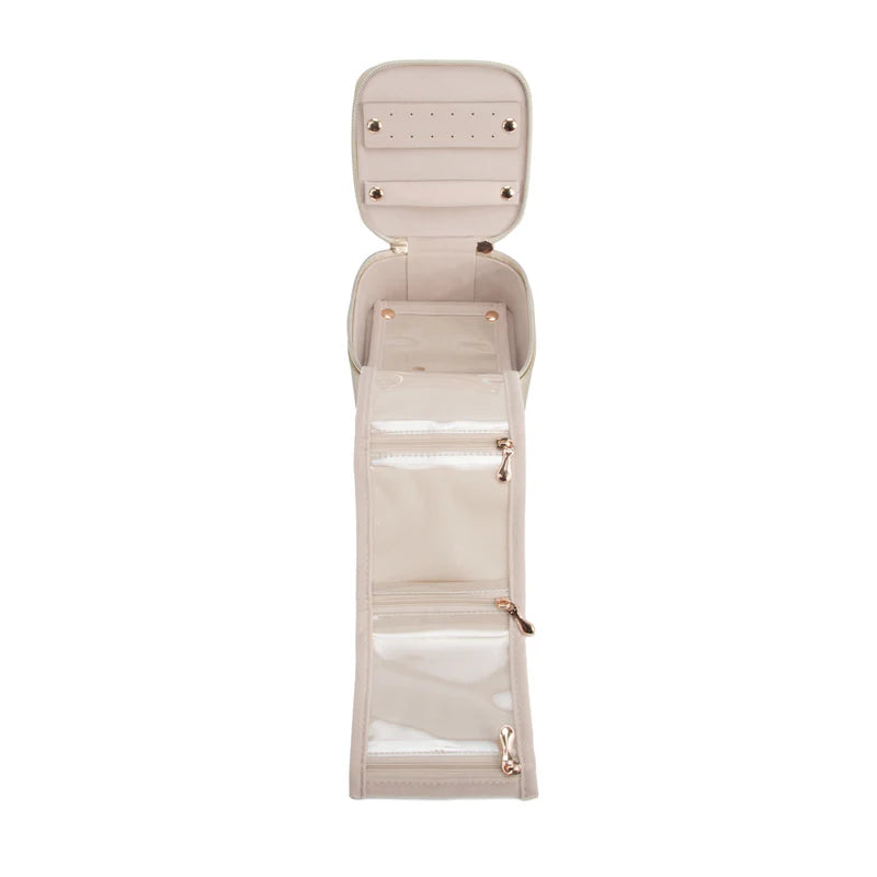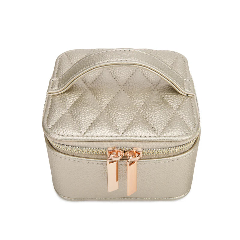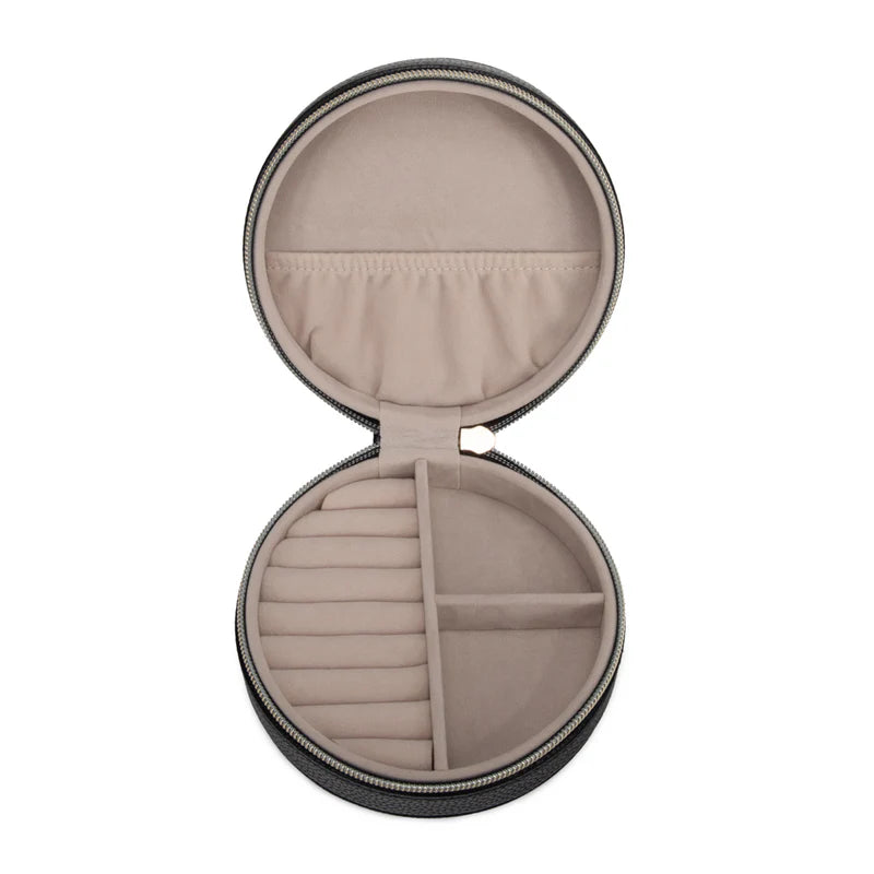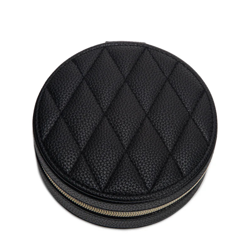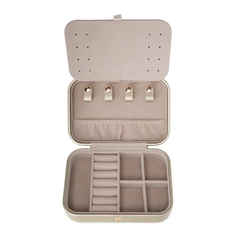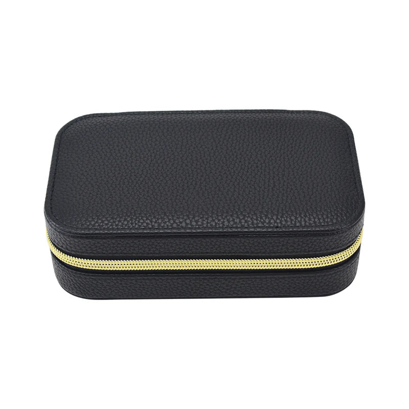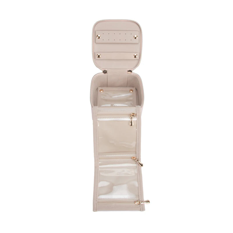 Regular price $30.00Meet the Leah 5 Eyewear & Jewelry Case - your ultimate accessory game-changer! Crafted from luxurious pebbled vegan leather with a soft velour interior, it’s designed to keep your eyewear and jewelry safe and sound. Its sleek snap closure ensures everything stays compact and portable, while the handy hanging loop offers easy access wherever you are. Inside, find a built-in mirror and smart compartments for seamless organization. It fits up to 2 pairs of sunglasses or reading glasses, secures 21 stud earrings with a special earring card, and even has a lift-up feature for your larger earrings. Plus, with 5 loop snaps, your bracelets and necklaces stay free from tangles, and 3 pillow rolls keep your rings snug. Get ready to elevate your accessory storage with style and sophistication!