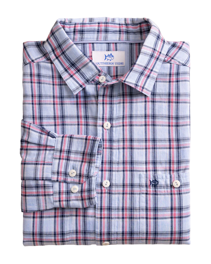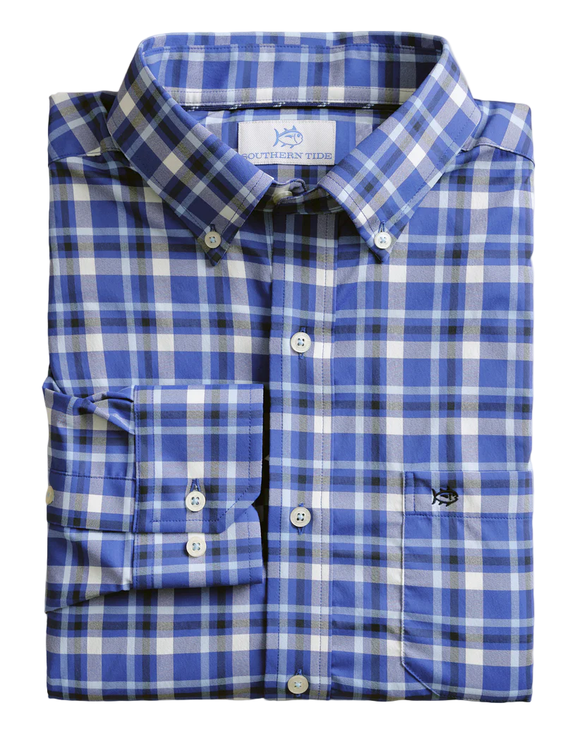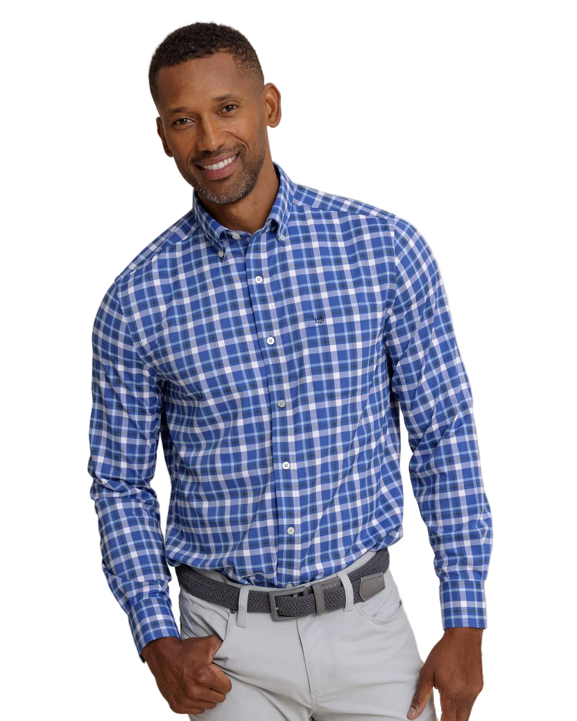 Lightweight, quick-drying, and made to keep you cool, the Crofton Plaid Charleston Long Sleeve Sport Shirt blends performance with classic Southern style. Crafted from wicking fabric with built-in cooling technology, it’s designed to move effortlessly from dockside afternoons to dinner downtown. A refined plaid pattern, hidden button-down collar, and adjustable cuffs create a polished look that’s comfortable in every season.