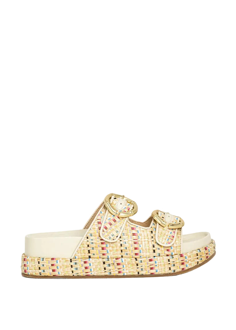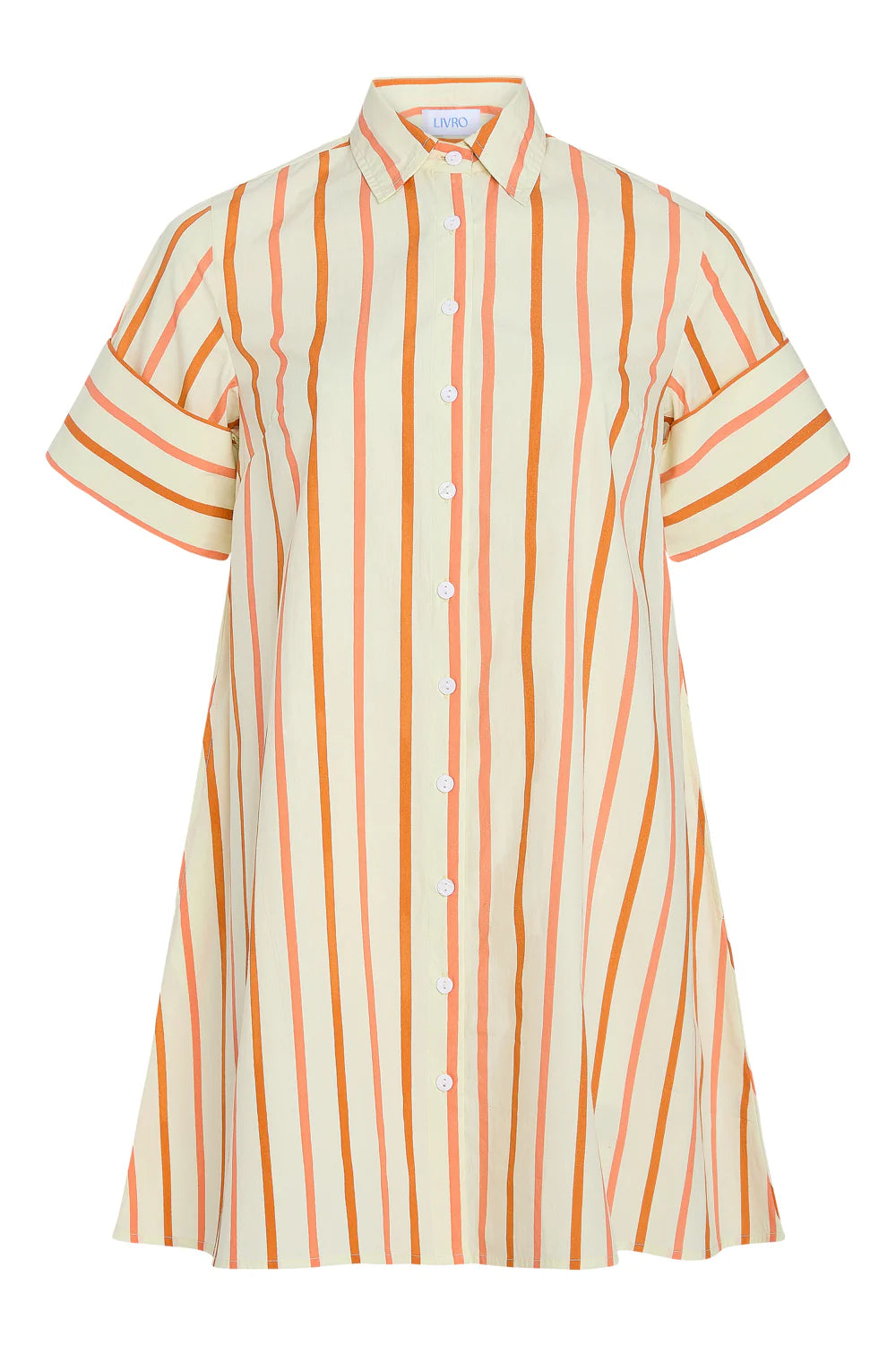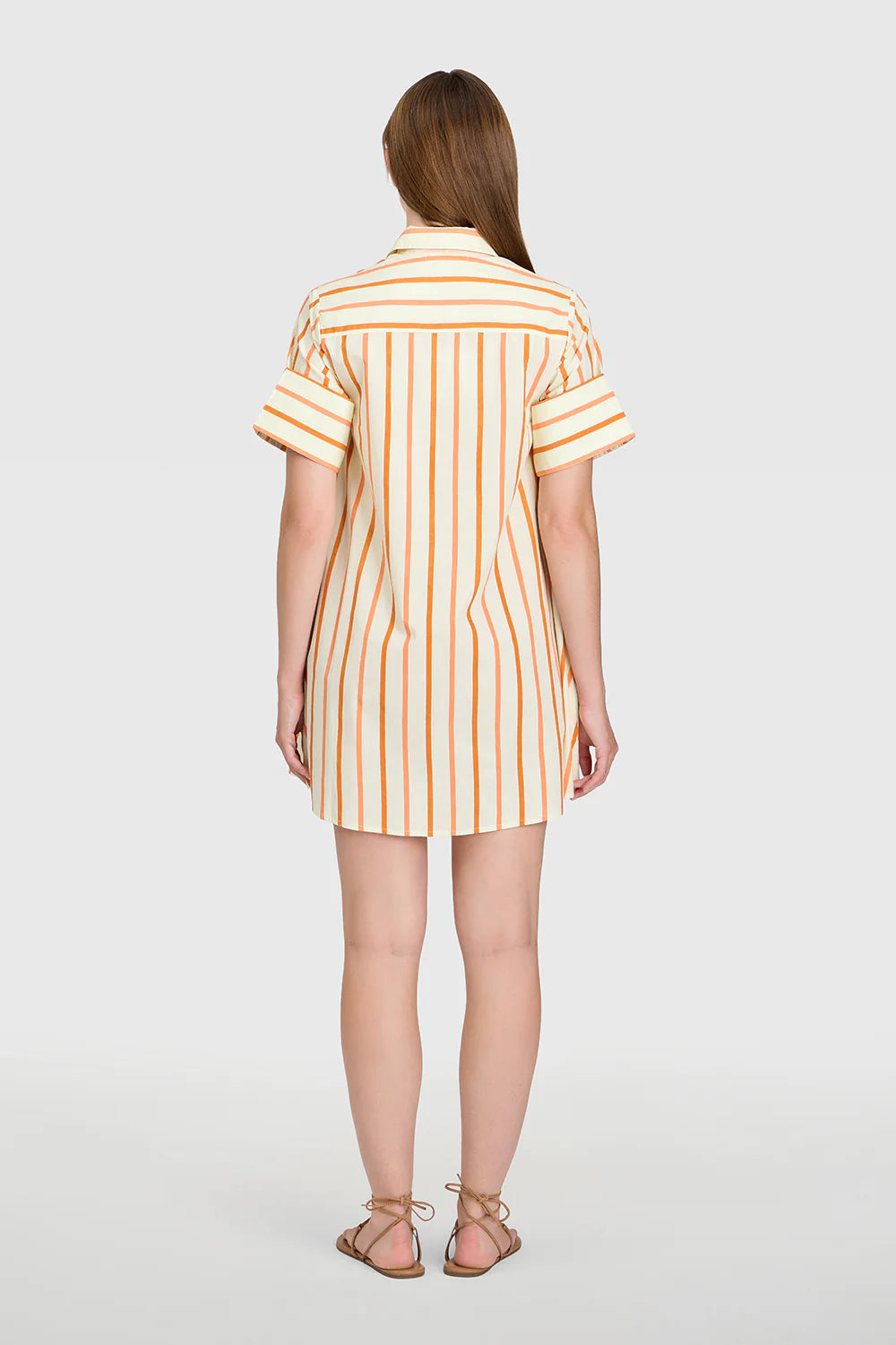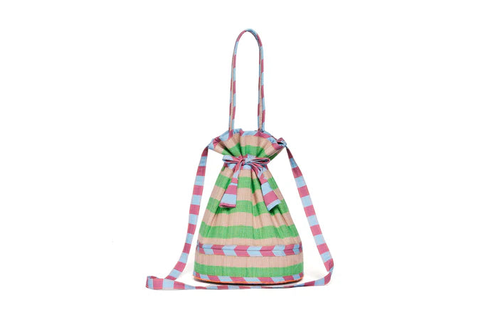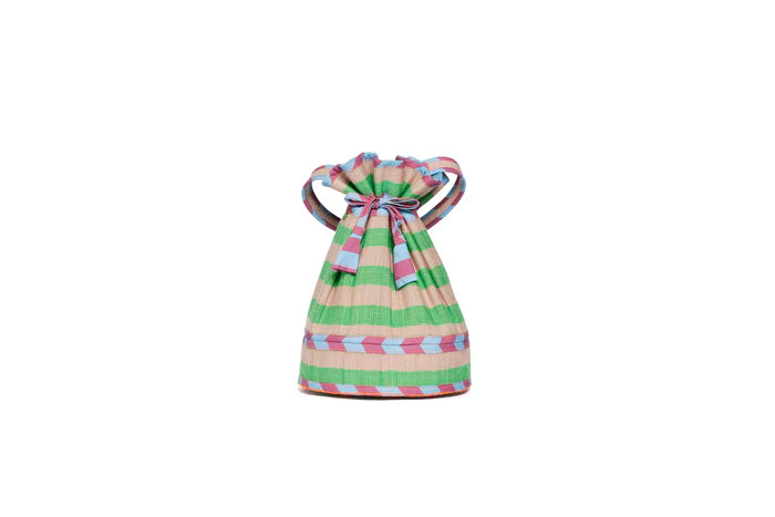Sunset Samba is a warm dance of golden orange and sky blue stripes paired with a peach and mint green striped trim. Sunset Samba captures the glow of summer where sunlight softens into honey tones and the air hums with tropical rhythm.
