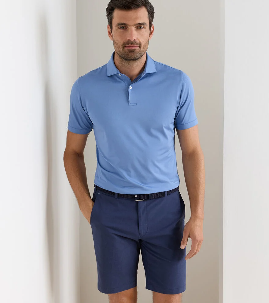 Clean texture, clean trim, clean presence — the Peter Millar Men's Verse Performance Mesh Polo gives embroidered polo shirts a sharper presentation. The mesh fabric adds subtle dimension that helps polo shirts with a logo look more intentional up close. Mother-of-pearl buttons elevate the finish, creating business apparel built for leadership. That elevated look holds across meetings, client rounds, and event photos, delivering an understated, premium look for your team to show up consistent and credible.