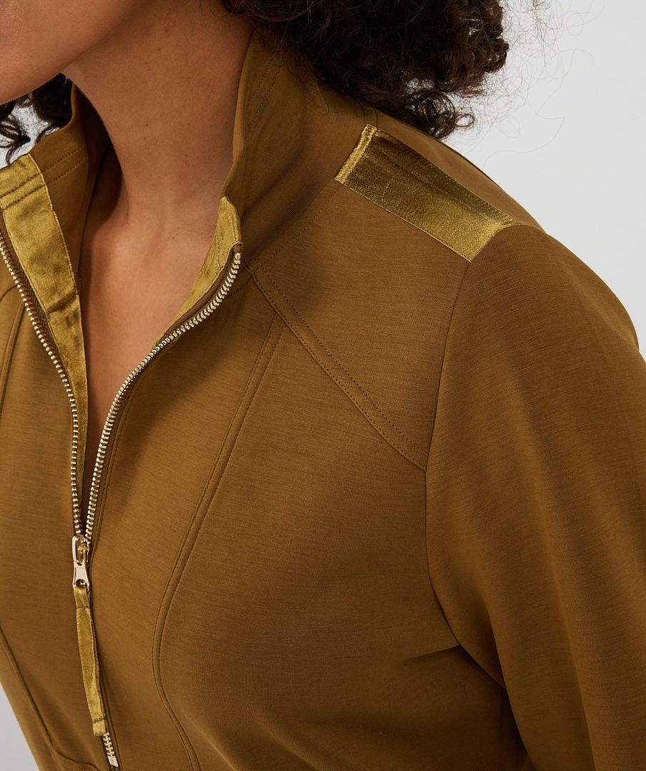 Let's get comfy! This fine dress made of 48% modal features a beautiful gold zipper and puff detail at the sleeves and shoulders.
