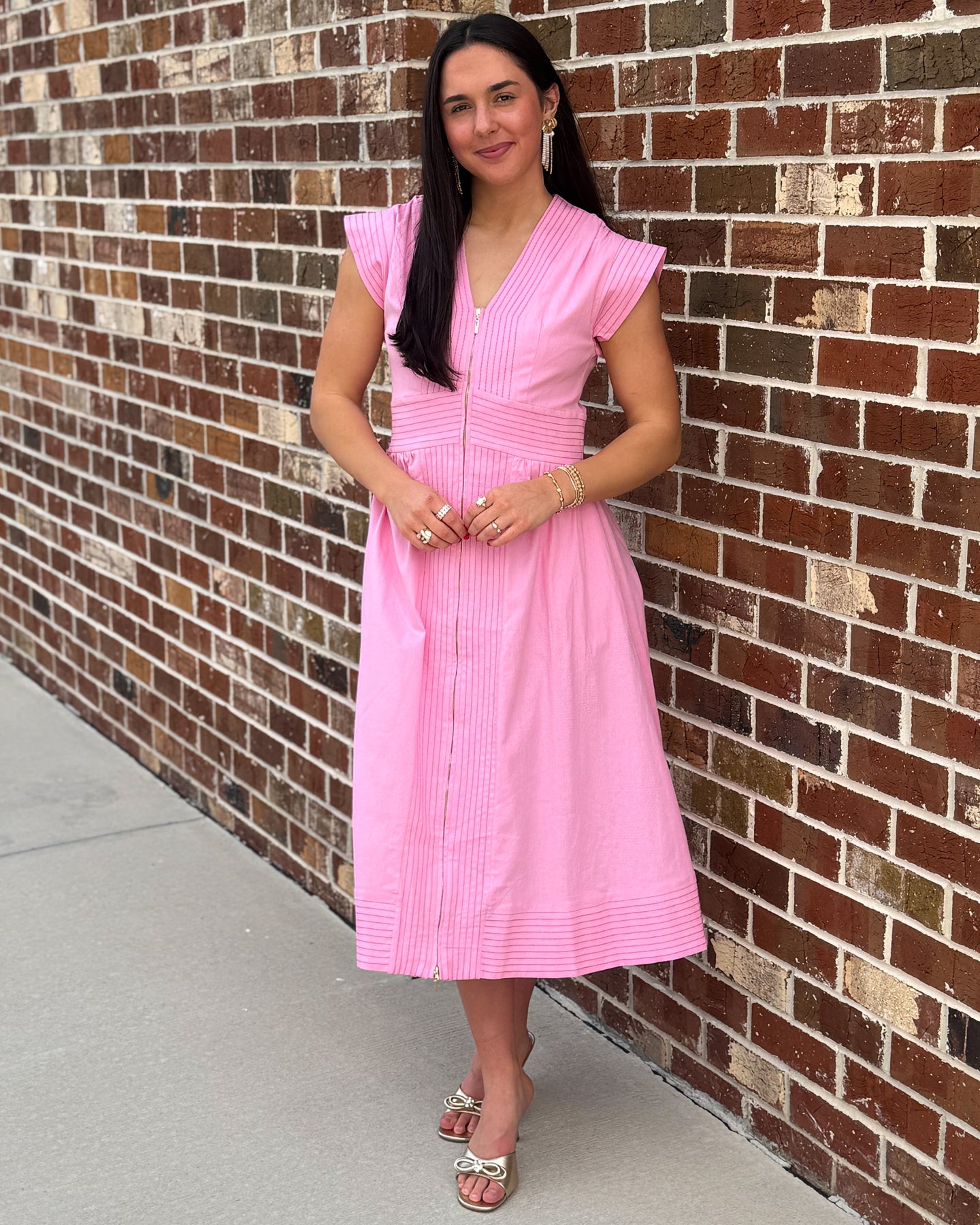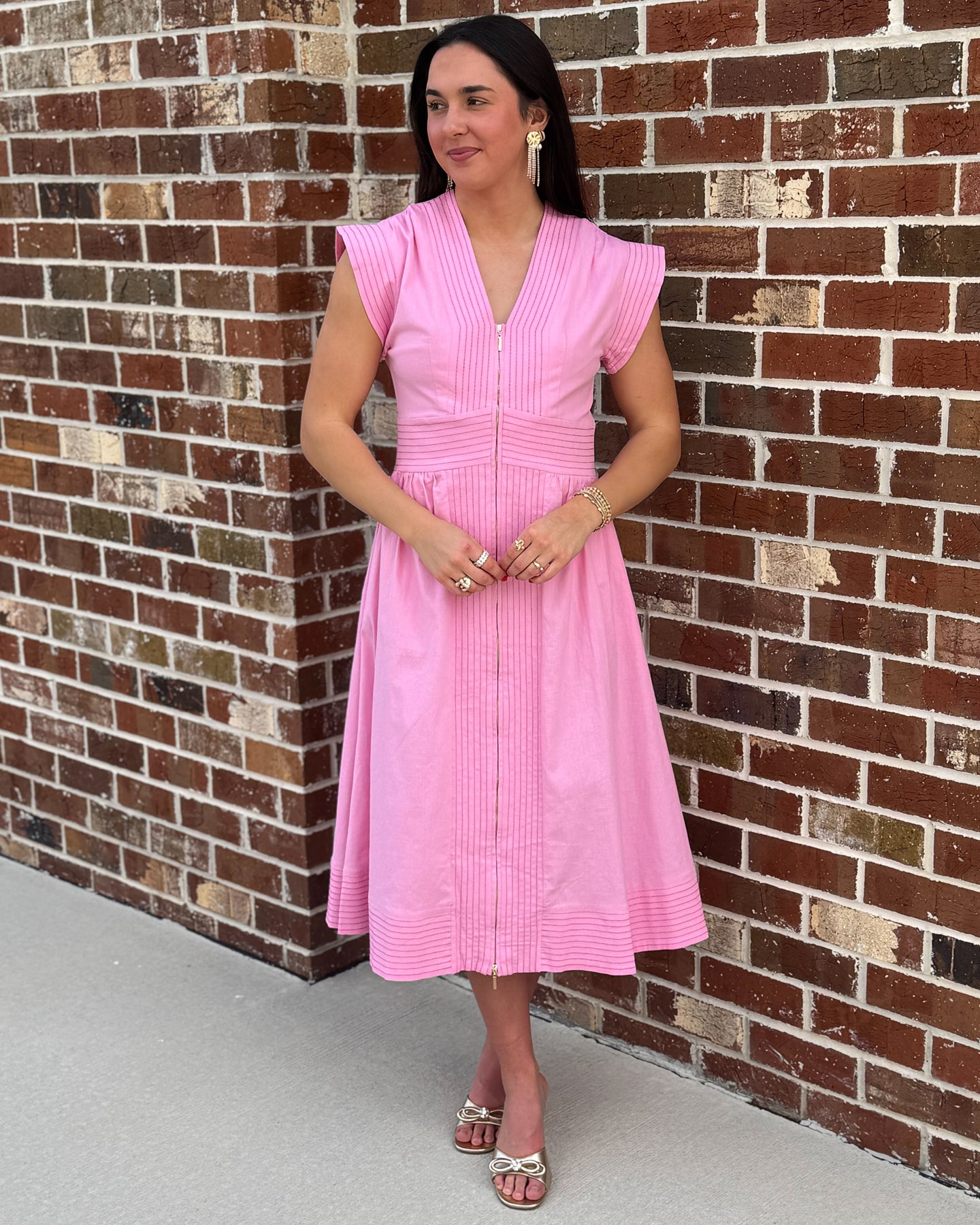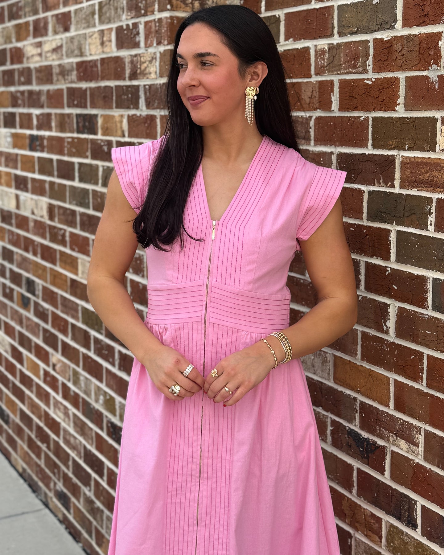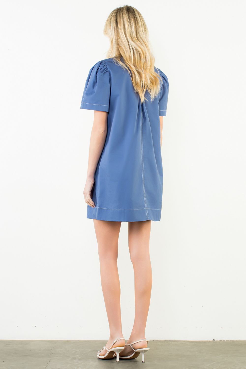 Our Ruthie shirt dress style with an inverted pleat in the front and back , cozy side pockets, shirt collar and split cuffs for an easy shirt look. Made of an easy, polished, breathable cotton. 97% cotton poplin. 3% spandex.