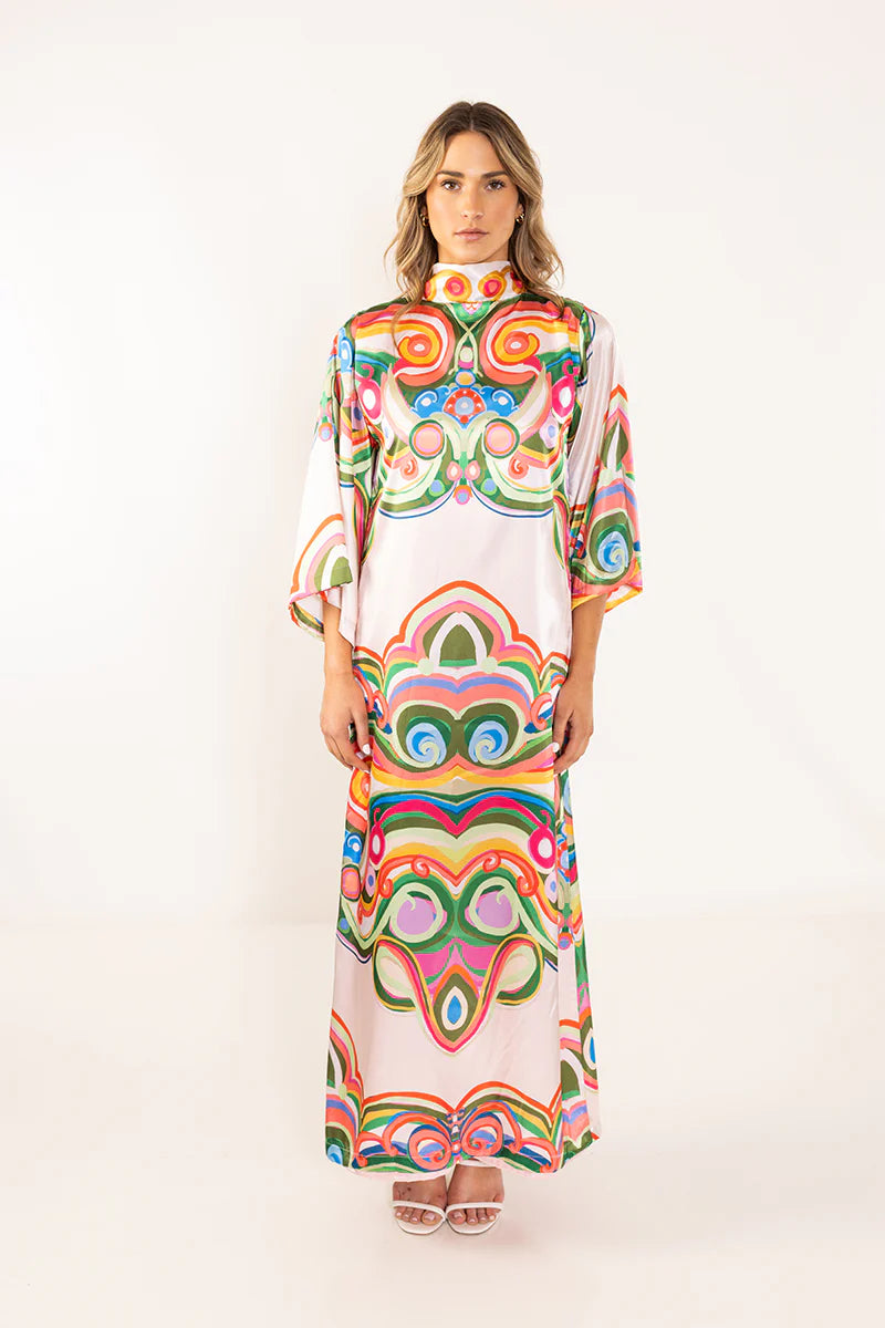Meet Winston. Winston is a colorful parade of game birds in emerald and gold,decorated with bold red chinoiserie and soft touches of coral on a warm tan