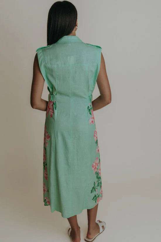 The Lainey Dress features a classic button-up front with a flattering belted waist, creating a polished silhouette. Its versatile design makes it perfect for both casual days and professional settings, offering comfort and style in one easy-to-wear piece.