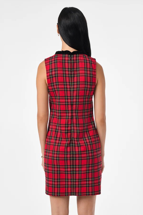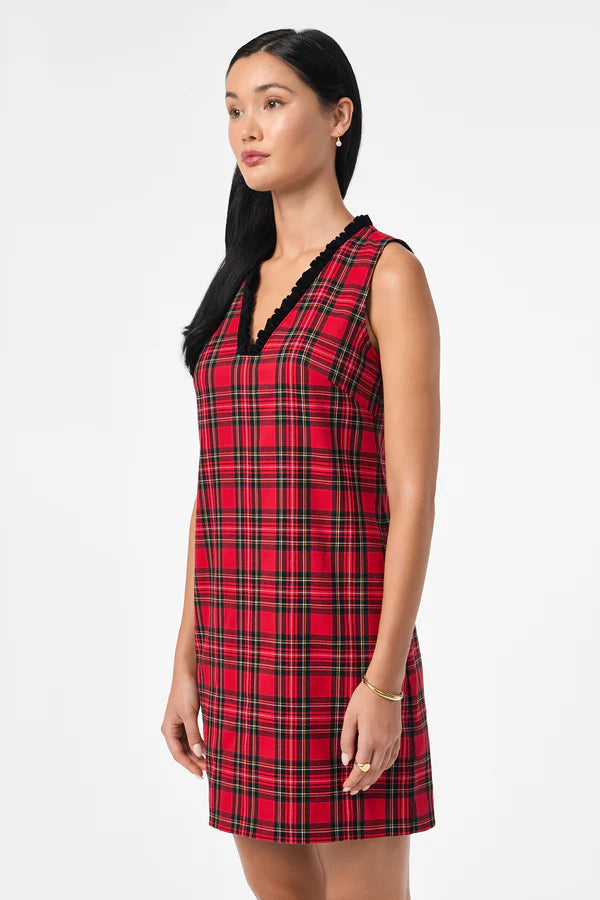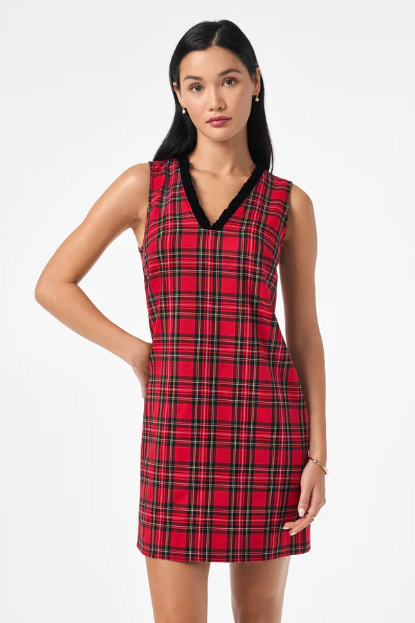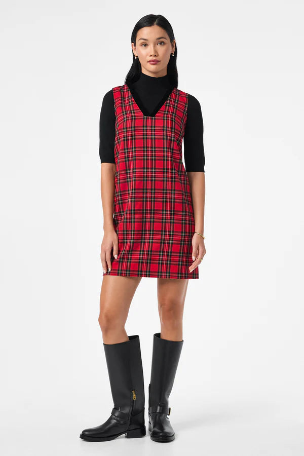 Effortlessly modern, this sleeveless dress features a spread collar, princess seams, and a double zipper front for an edgy touch. Front flap patch pockets add functionality to this sleek, fitted silhouette.