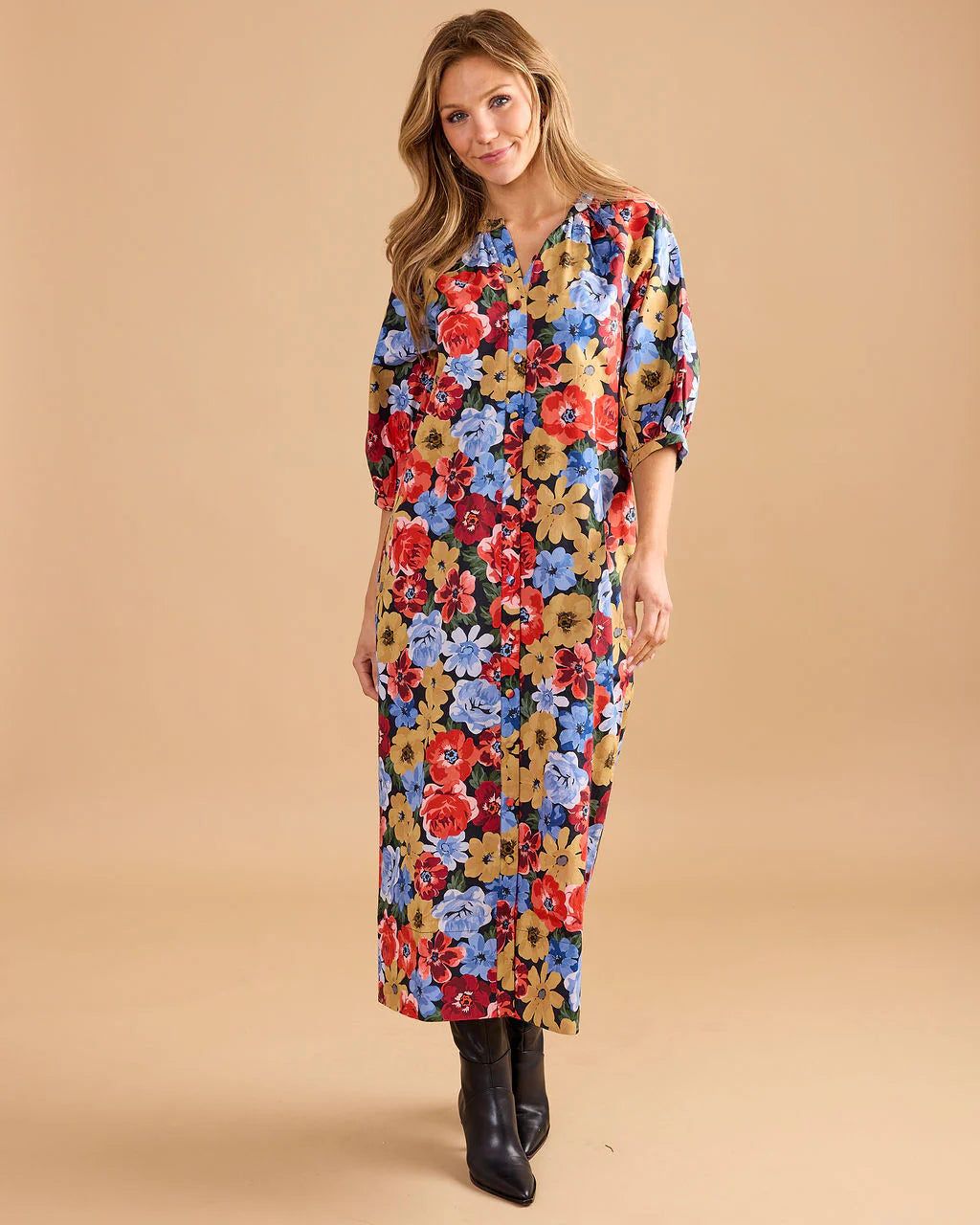 The Madeleine Dress is a timeless and effortlessly chic maxi dress of your dreams! Featuring mid-length sleeves, button-front detailing and functional pockets. Whether dressed up for a special occasion or styled casually for everyday wear, the Madeleine Dress is a versatile and sophisticated addition to any wardrobe.