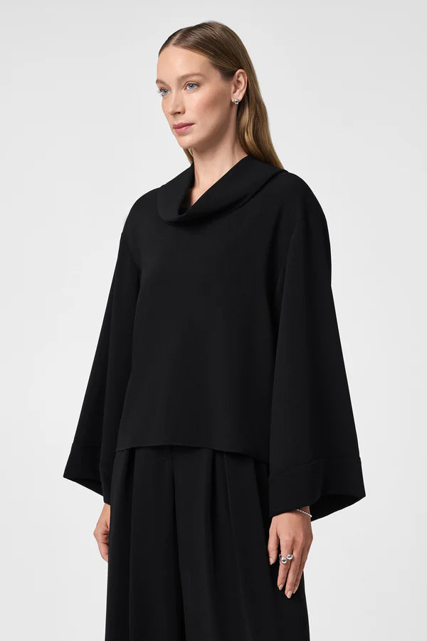 This breezy top is a versatile choice for your year-round wardrobe. With a polished design, drapey cowl neckline, wide long sleeves, and a relaxed, boxy fit, this polished long sleeve top is a wardrobe essential for dressing up or down.
