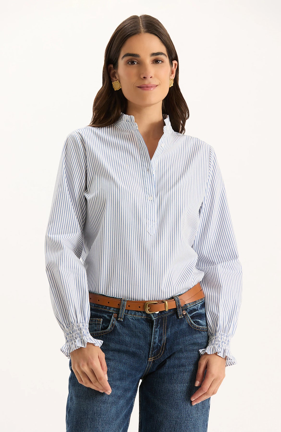 The simple yet elevated Harper top is an easy way to look pulled together in a cinch. Now available in our exclusive, one-of-a-kind Blue Mosaic print, this is a throw-on-and-go one piece wonder.
