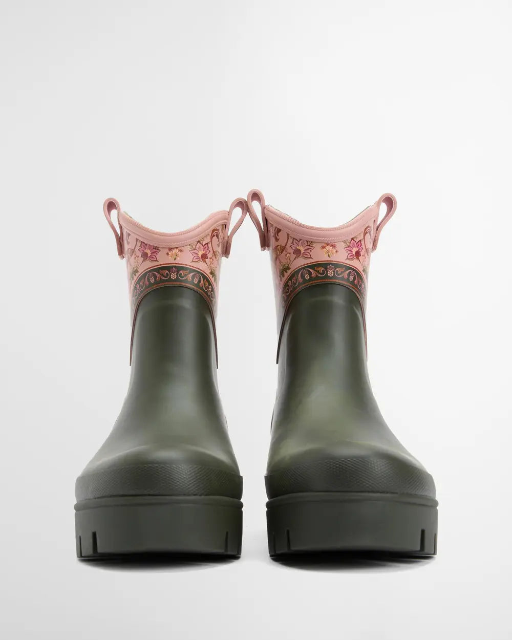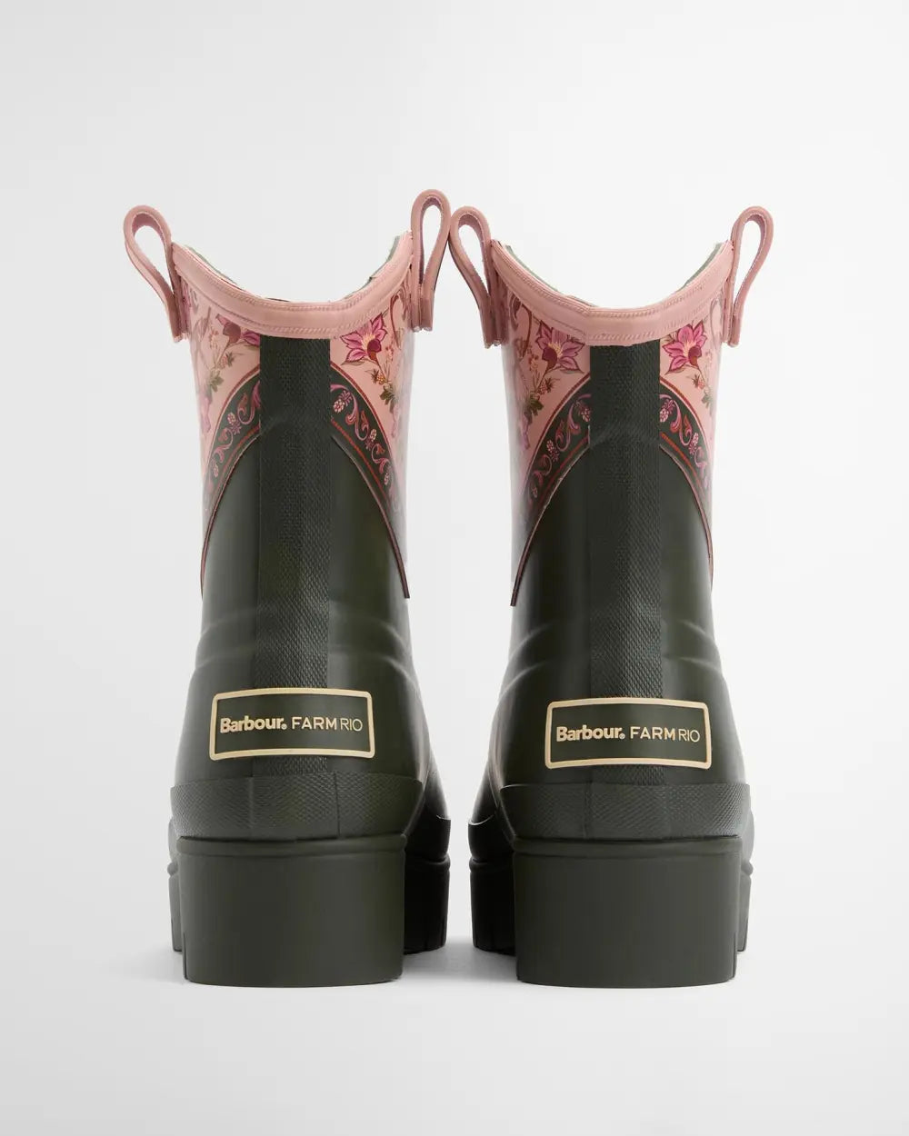 Fusing Barbour's signature countryside spirit and classic outerwear, footwear and accessories with FARM Rio's Brazilian spirit, the Barbour FARM Rio collaboration offer timeless British heritage infused with Brazilian tropical vibrance. Putting a western spin on Barbour's signature ankle wellies, the Barbour FARM Rio Thais Ankle Wellingtons make rainy days brighter. Showcasing the vibrant Barbour FARM Rio Tropical print, these wellingtons were made to ensure you can express yourself even on the dullest of days.