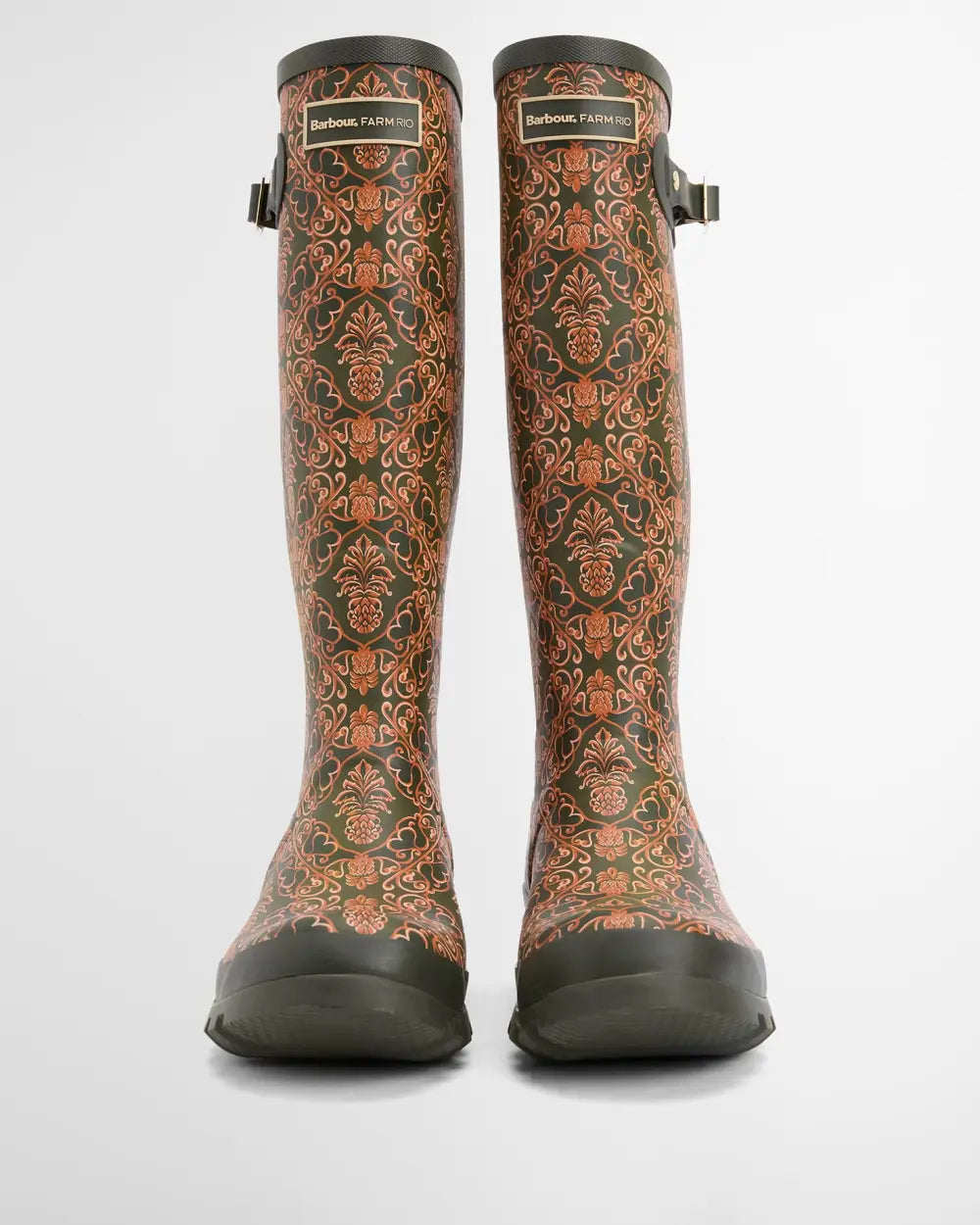 Fusing Barbour's signature countryside spirit and classic outerwear, footwear and accessories with FARM Rio's Brazilian spirit, the Barbour FARM Rio collaboration offer timeless British heritage infused with Brazilian tropical vibrance. Boasting a classic Barbour silhouette, the Barbour FARM Rio Cami Wellingtons make sure you're ready from whatever the great outdoors has in store, in style. An all-over Barbour FARM Rio Pineapple print gives this once simply practical style a vibrant upgrade. All of a sudden the wet-weather doesn't seem all that dull.