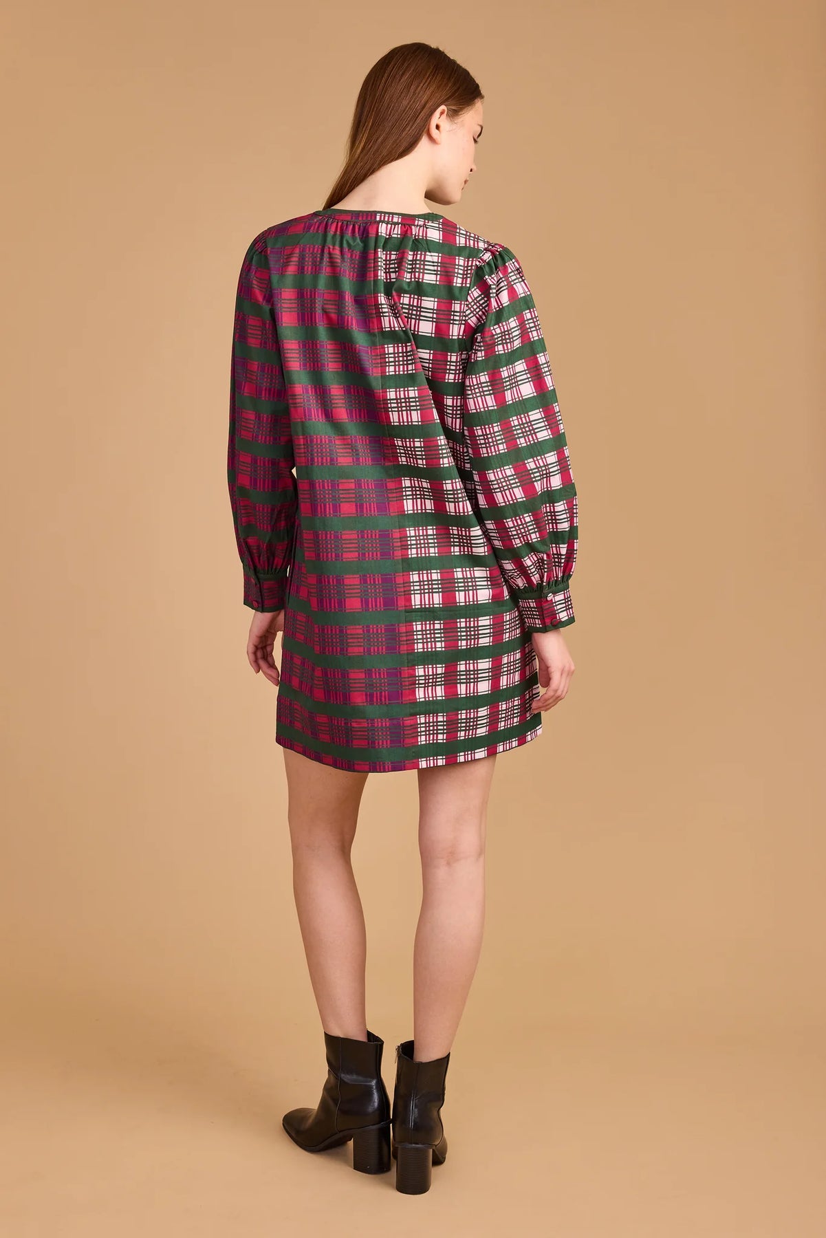 The Leslie Dress in Party Plaid is a festive favorite with its long sleeves, statement print, and charming silhouette. It is a playful dress with a bold plaid print that makes it the perfect choice for celebrating in style.