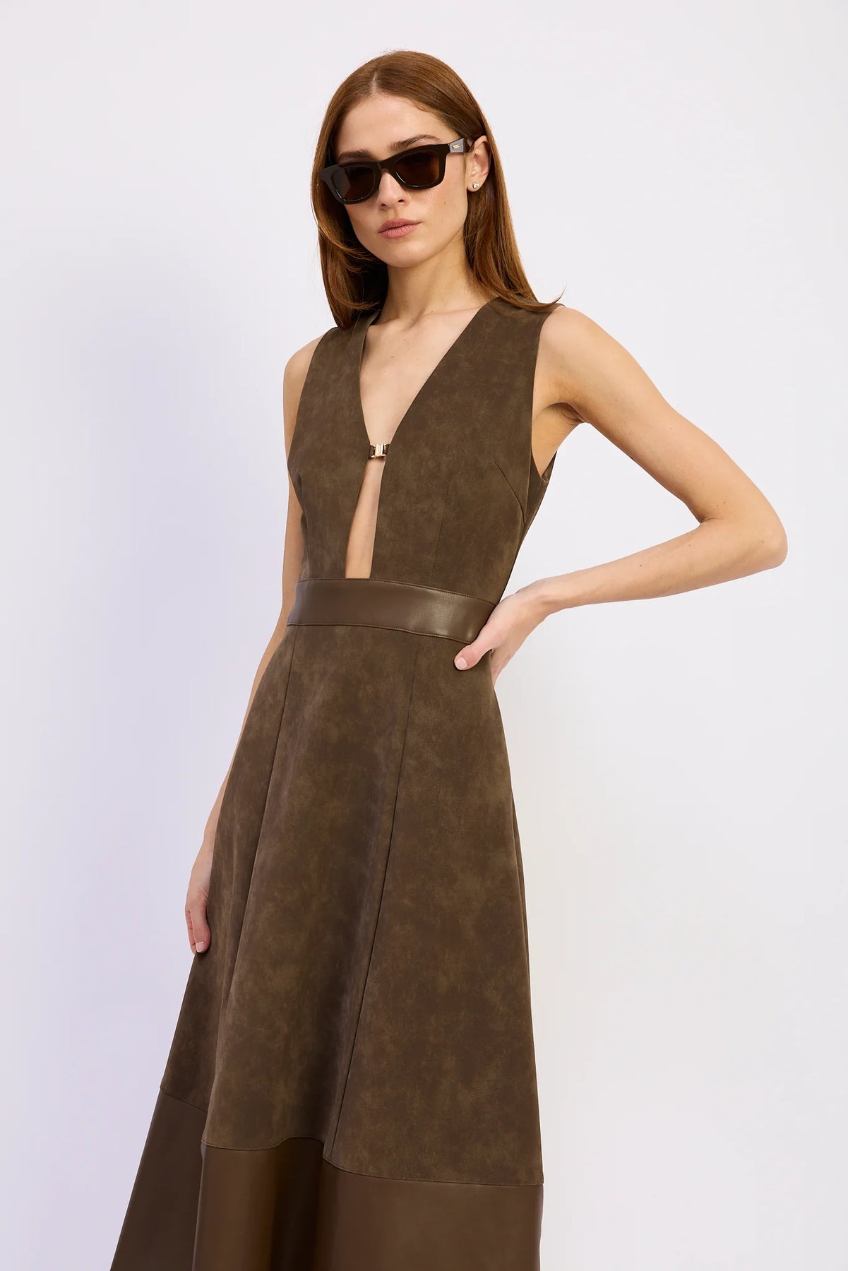 Miller Mixed Media Dress (Brown)