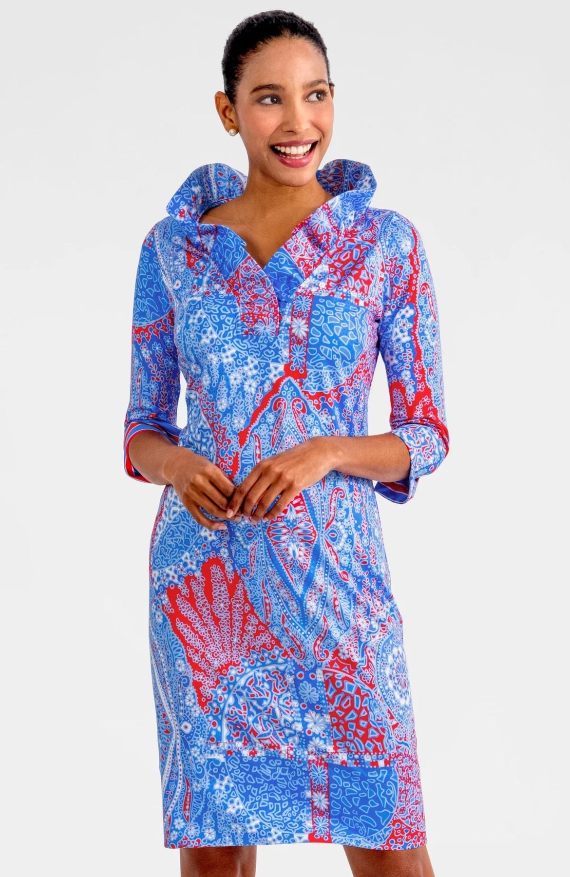 Ruffleneck Dress 3/4 Sleeve (Blues)