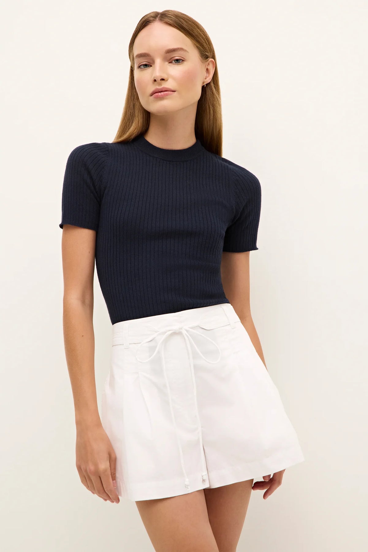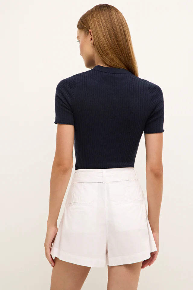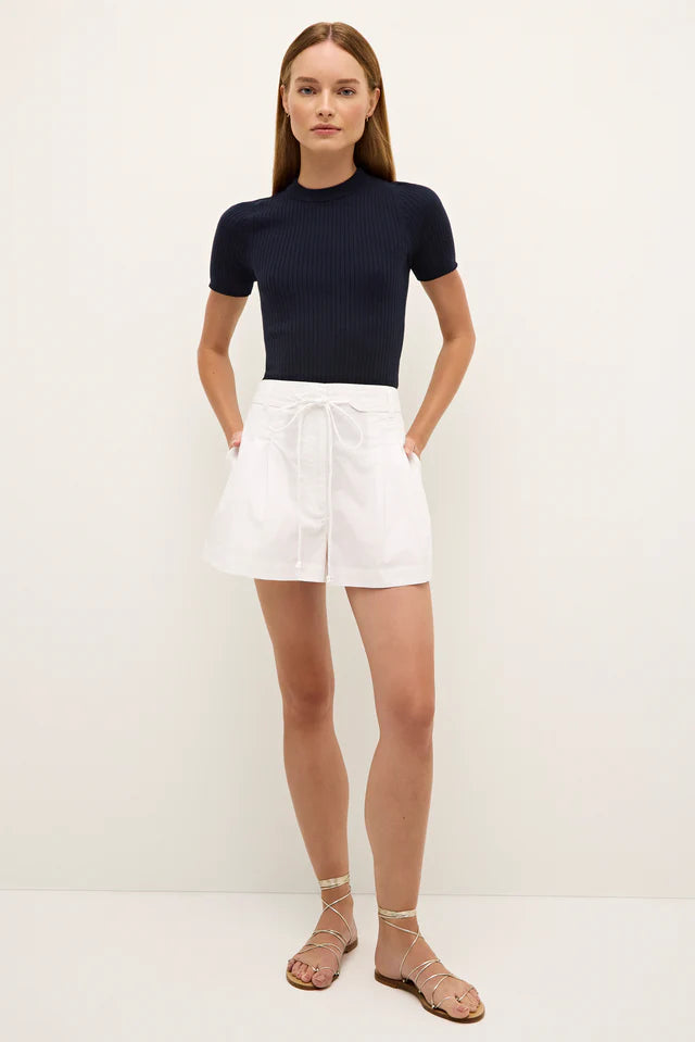 Equally feminine and utilitarian, our A-line Lander short is made from sleek cotton chino with a pleated silhouette that creates a beautiful fit. Designed to sit high on your waist, it has a removable belt with long, corded end ties. This classic Optic white style fastens with a center-front zip and hook-and-eye closure.