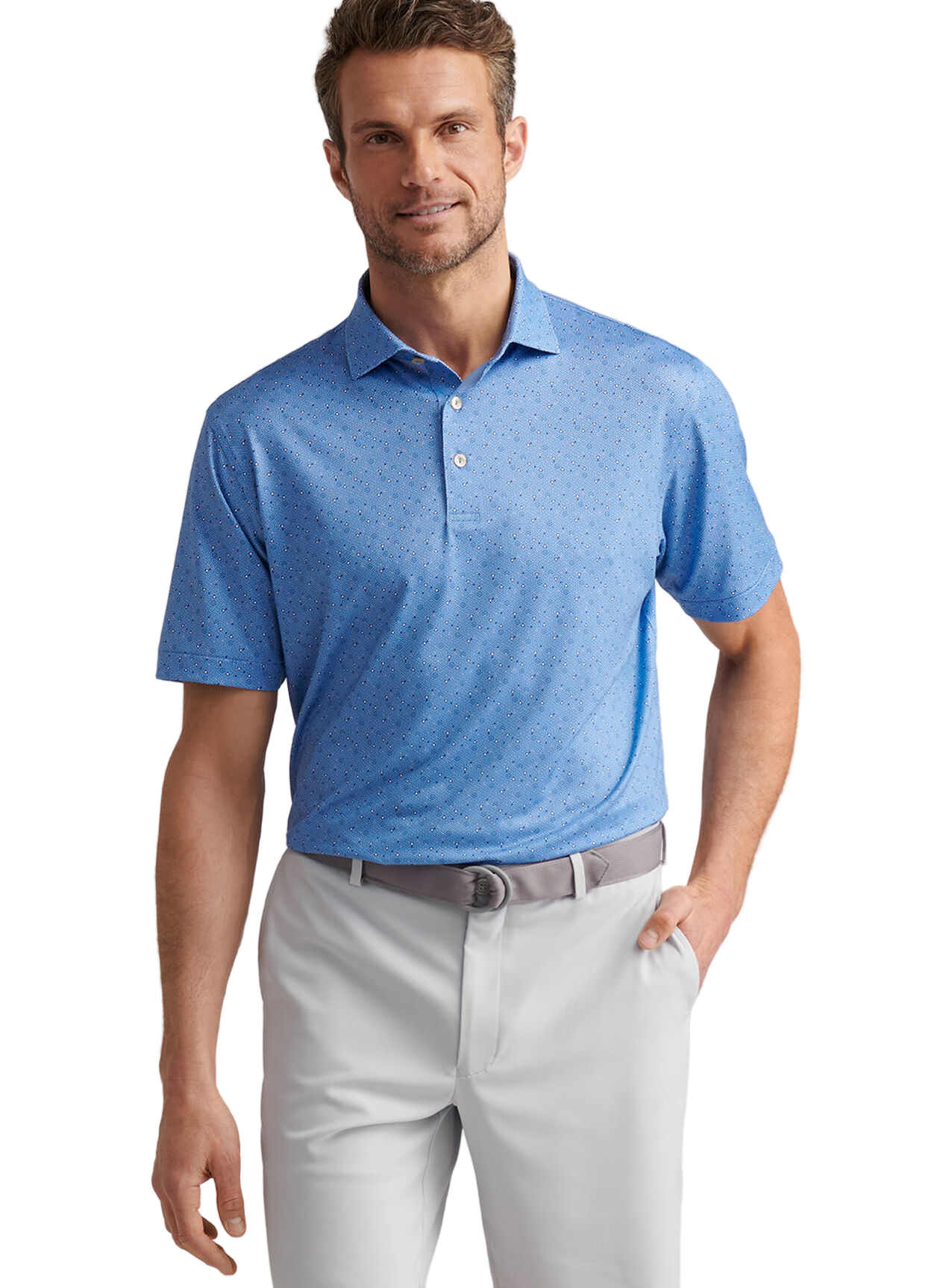 Our Summer Comfort jersey polos are gold standards for softness and exceptional performance. These are packed with four-way stretch, wicking and UPF 50+ protection in our signature Summer Comfort fabrication. This shirt features a custom-designed geometric print for added style. Finished with a spread collar and three-button placket.