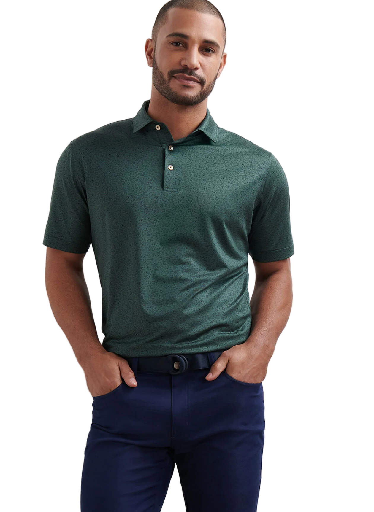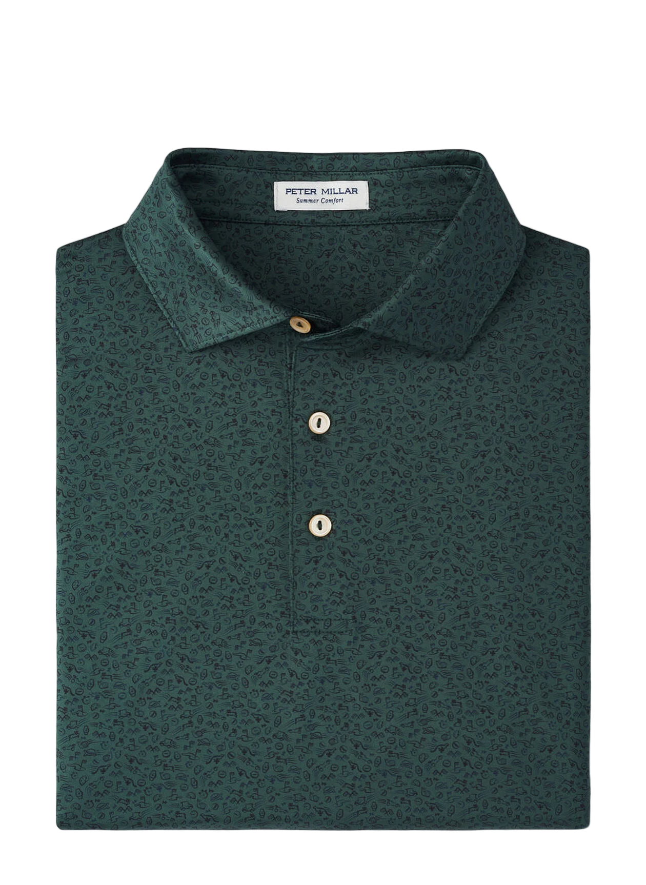 Our Summer Comfort jersey polos are gold standards for softness and exceptional performance. These are packed with four-way stretch, wicking and UPF 50+ protection in our signature Summer Comfort fabrication. This shirt features a custom-designed golf print for added style. Finished with a spread collar and three-button placket.