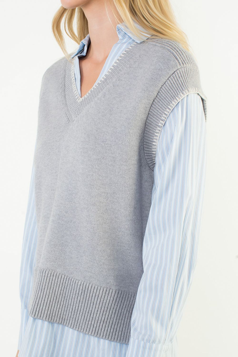V-Neck Layered Knit Top (Heather Gray)