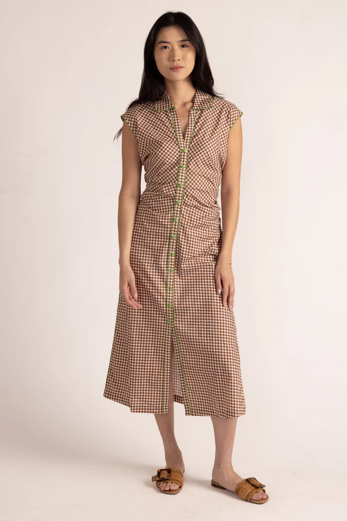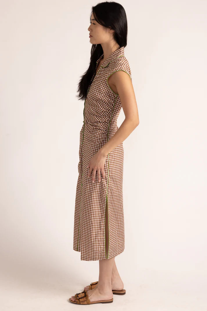 Elevate your wardrobe with the Layna Dress in a charming gingham pattern. This versatile piece features a classic checked design that transitions seamlessly from casual daytime wear to evening occasions. The gingham print adds a timeless touch of sophistication, while the thoughtful construction ensures comfort throughout the day. Perfect for creating effortless, put-together looks that work year-round.